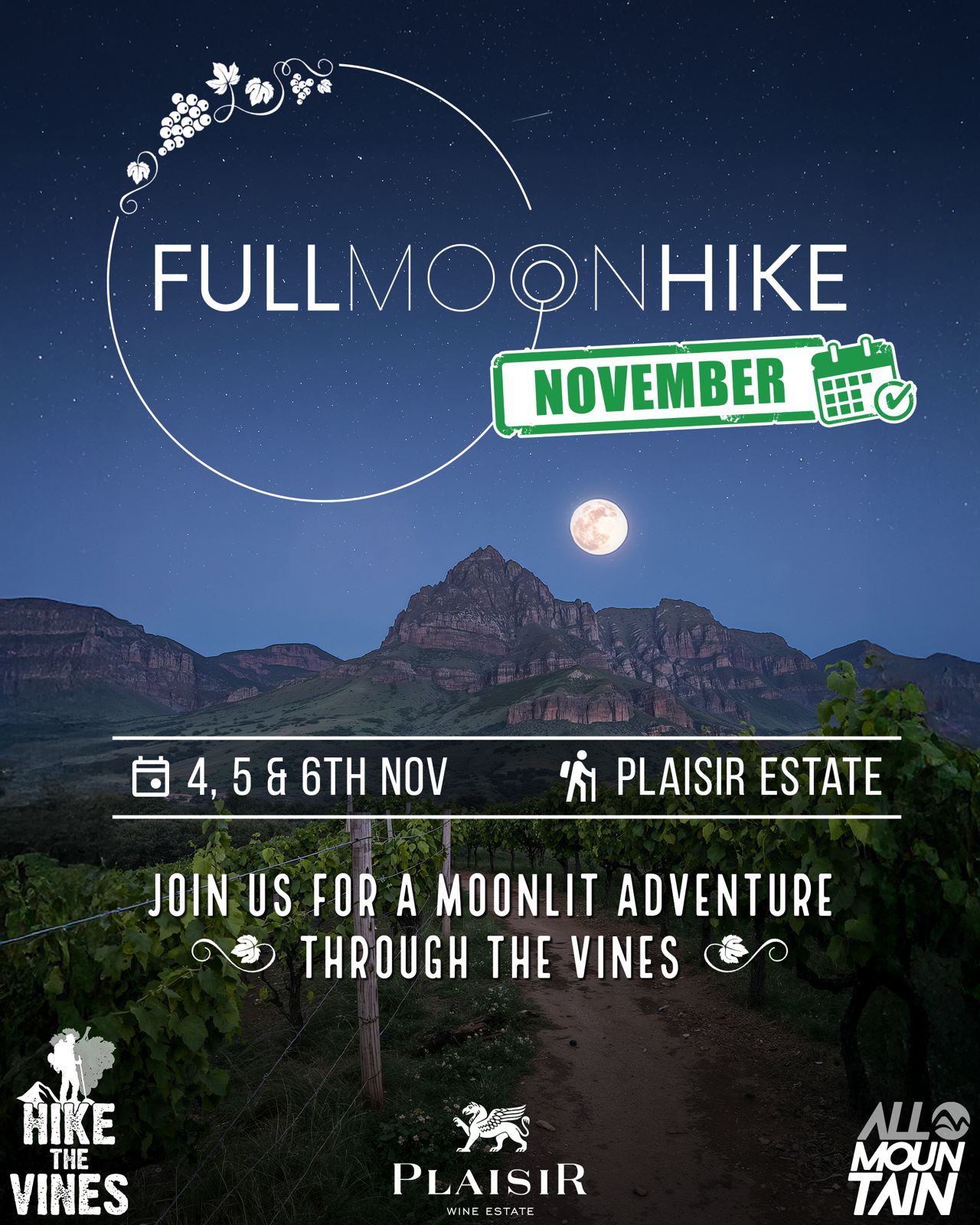Full Moon Hikes at Plaisir Wine Estate