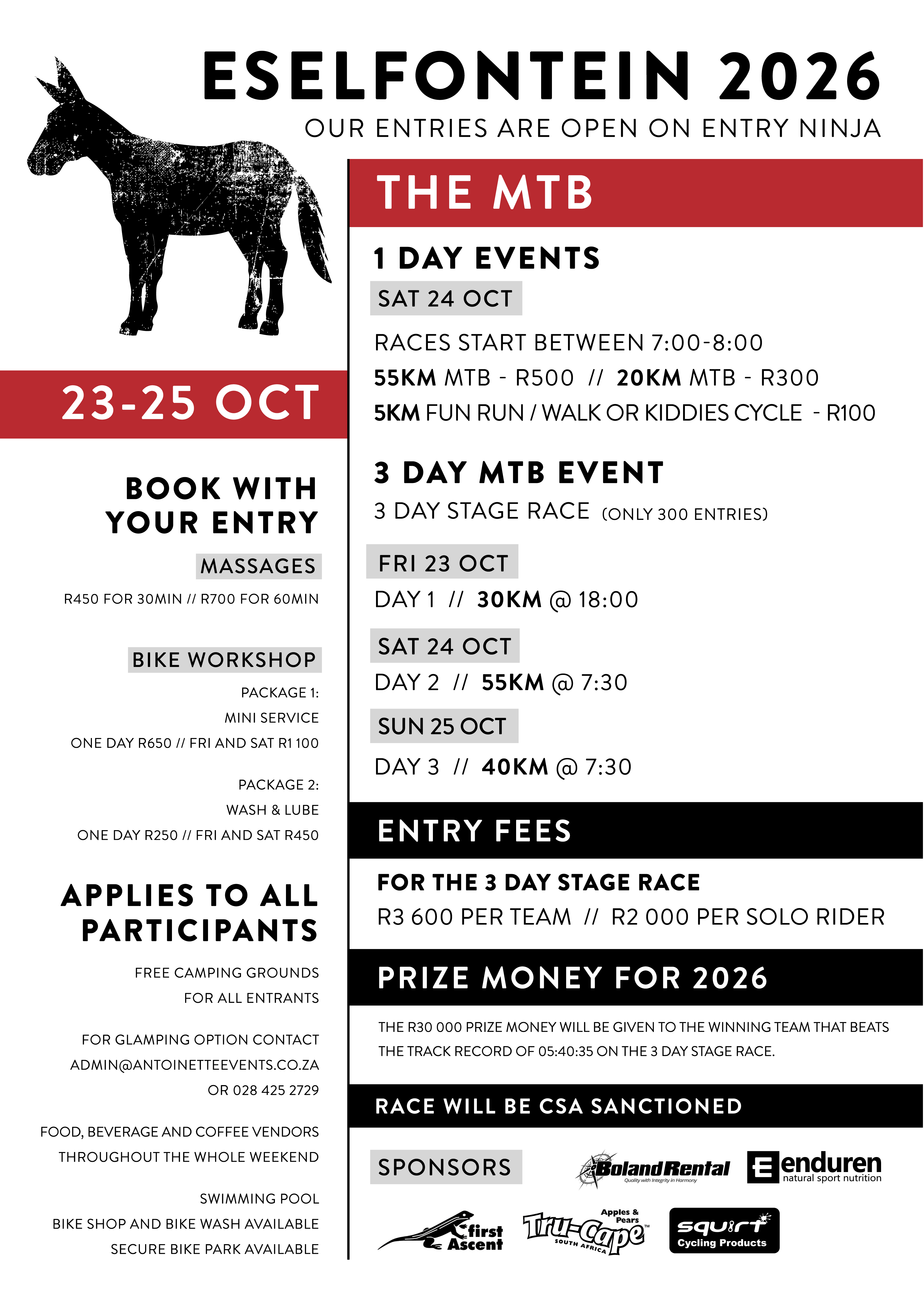 | 55km MTB 24 October 2026 | 55 km | R 500.00 | - |